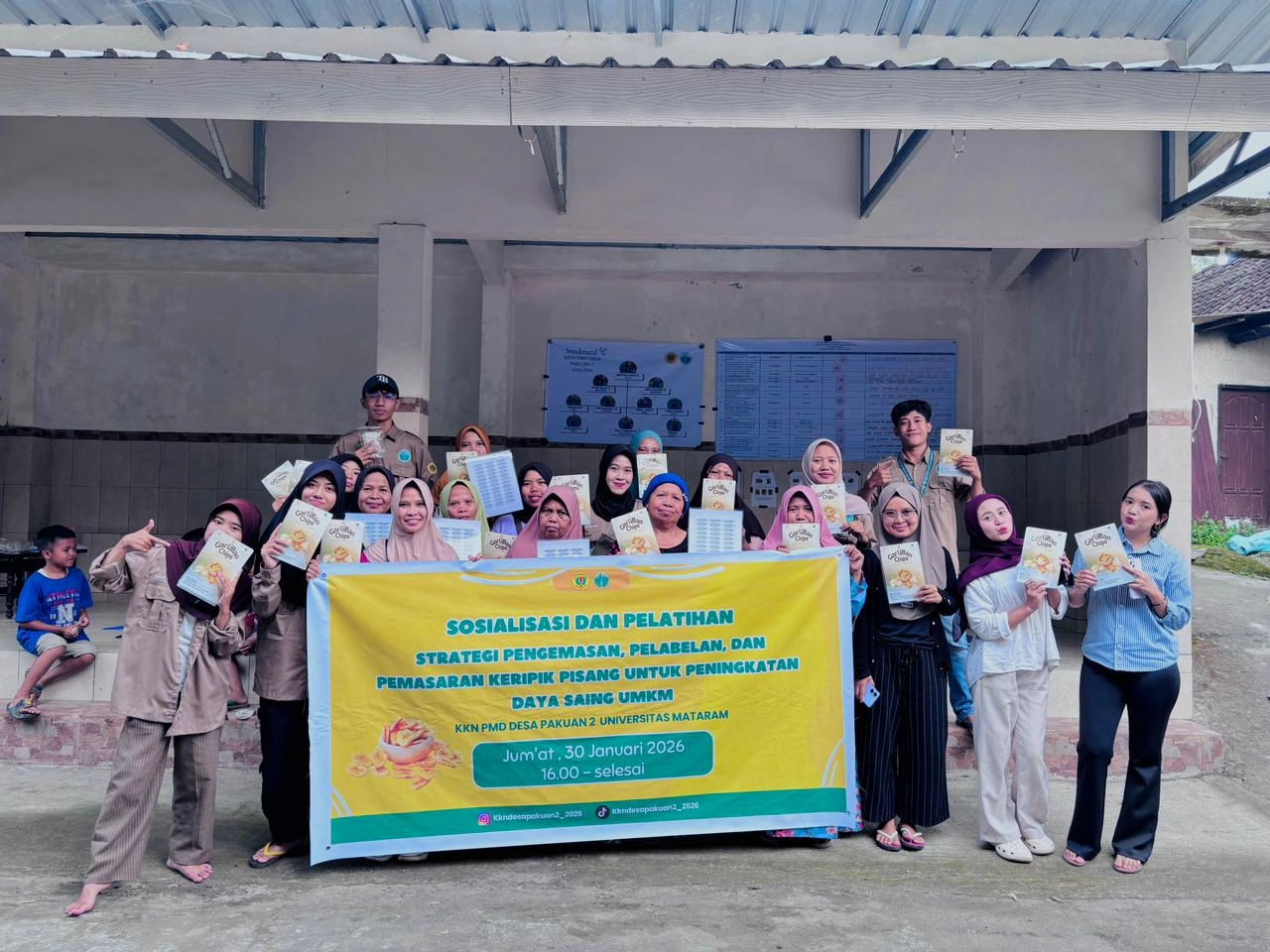Lombok Barat, insightntb.com – Mahasiswa Kuliah Kerja Nyata (KKN) melaksanakan kegiatan sosialisasi strategi pengemasan, pelabelan, dan pemasaran produk keripik pisang guna meningkatkan daya saing UMKM lokal. Kegiatan ini berlangsung di Desa Pakuan, Kecamatan Narmada, Kabupaten Lombok Barat, pada Kamis, 30 Januari 2026.