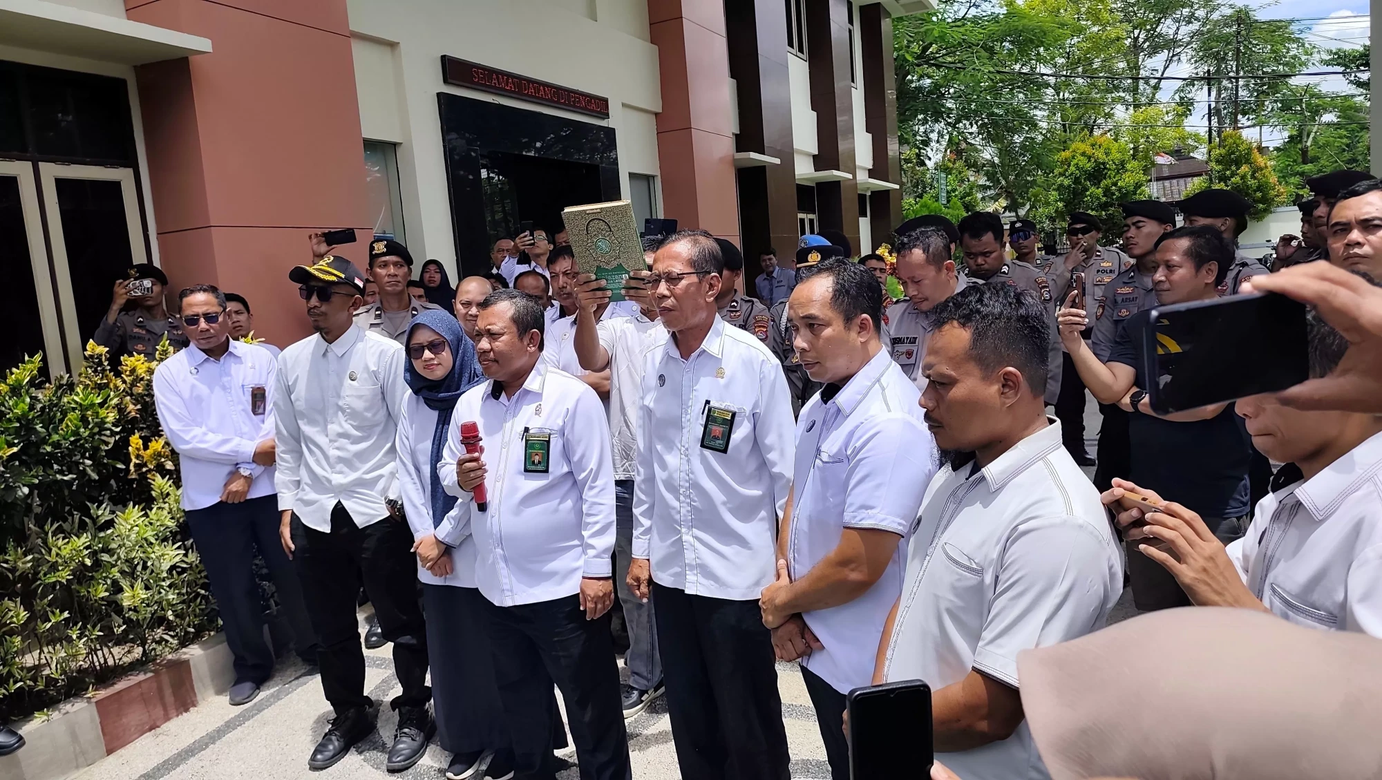 Sebagai tuntutan moral sekaligus simbol pemurnian lembaga peradilan, GMPRI meminta Ketua Pengadilan Agama beserta jajarannya untuk bersumpah di bawah kitab suci Al-Qur’an. Permintaan tersebut di kabulkan sebagai wujud komitmen terhadap integritas dan legalitas.