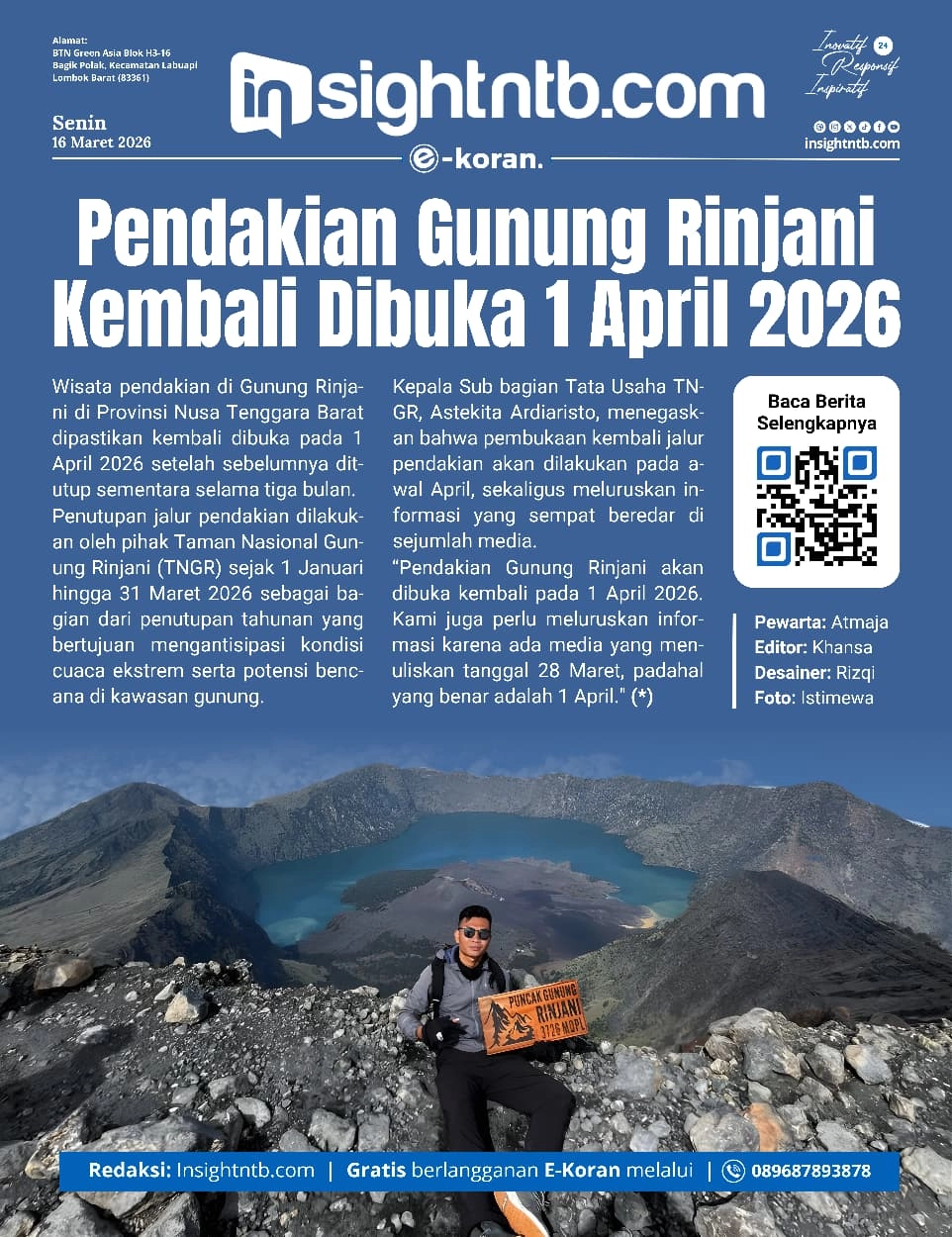 Mataram, insightntb.com – Wisata pendakian di Gunung Rinjani di Provinsi Nusa Tenggara Barat dipastikan kembali dibuka pada 1 April 2026 setelah sebelumnya ditutup sementara selama tiga bulan.